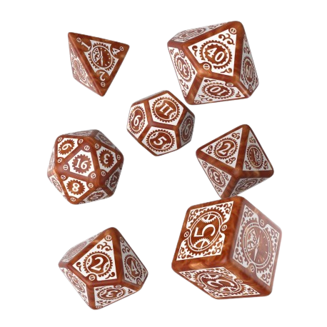 Q Workshop - Steampunk Clockwork Caramel & White - Dice Set